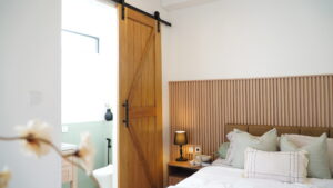 The minimalist bathroom feels warm and calming. On the left, the PALOMA FCP 1835T concealed basin mixer matched perfectly with the basin. Made from high-quality brass, it has a titanium grey finish with a smooth, hairline texture, giving it a touch of elegance. The basin mixer is durable, with anti-rust and anti-corrosion features, scratch-resistant coating to keep it looking beautiful over time.