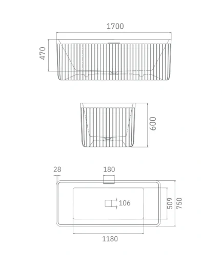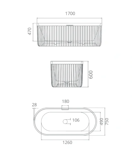 Freestanding Bathtub BUP 6033WF – Rockshield (1700 x 750 x 600)