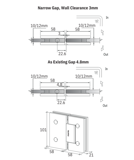 Glass Shower Hinge Brass SUS 304 Matte Black GAP 1323