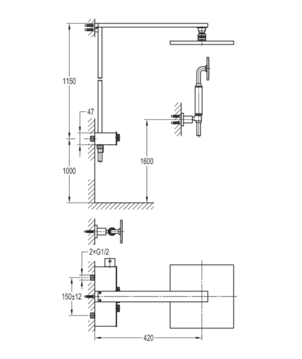 Single Lever Bath/Shower Mixer with Rainshower Eolica FCP 1809M