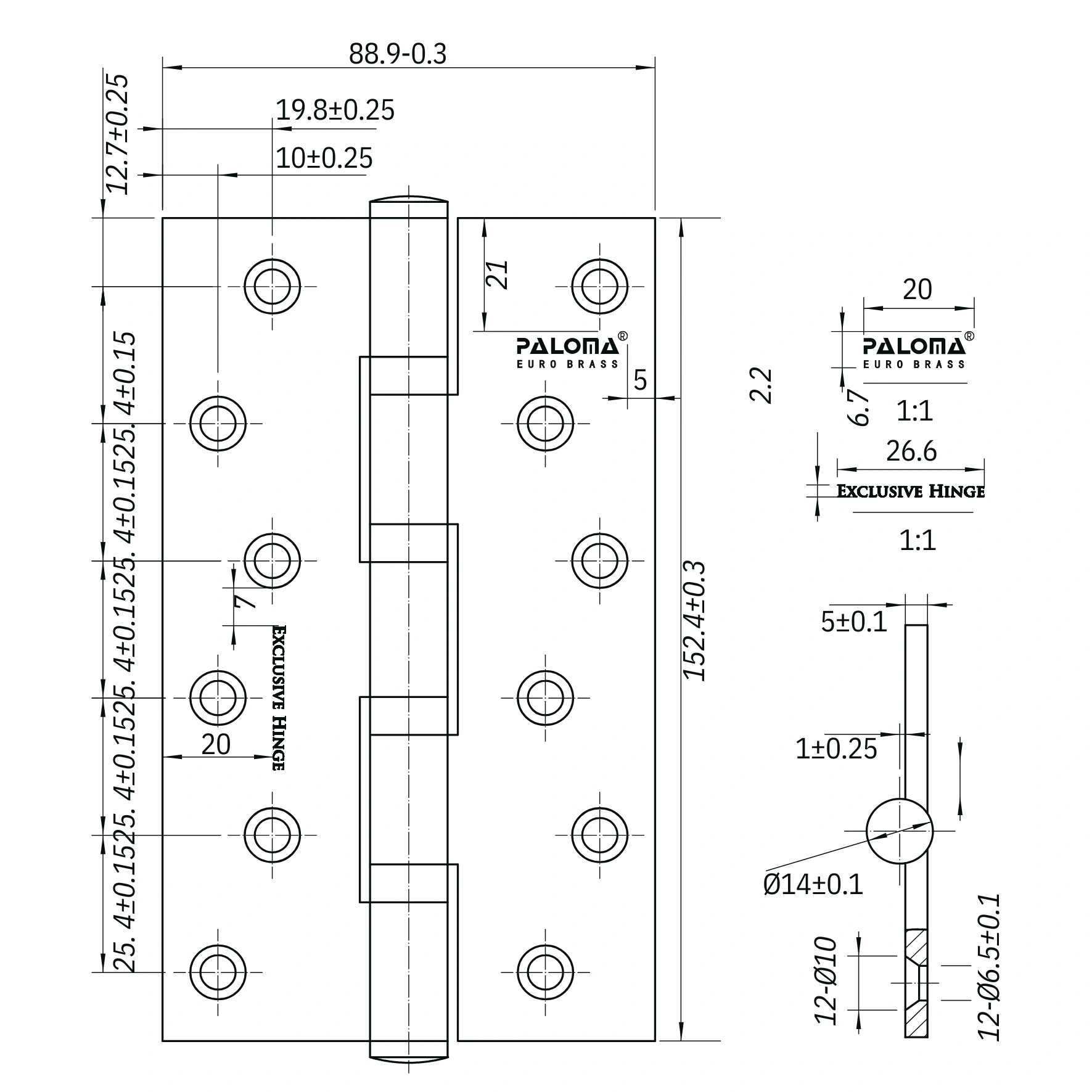 Butt Hinge Brass 6″ x 3.5″ x 5 mm 4BB BHP 624 (120kg)
