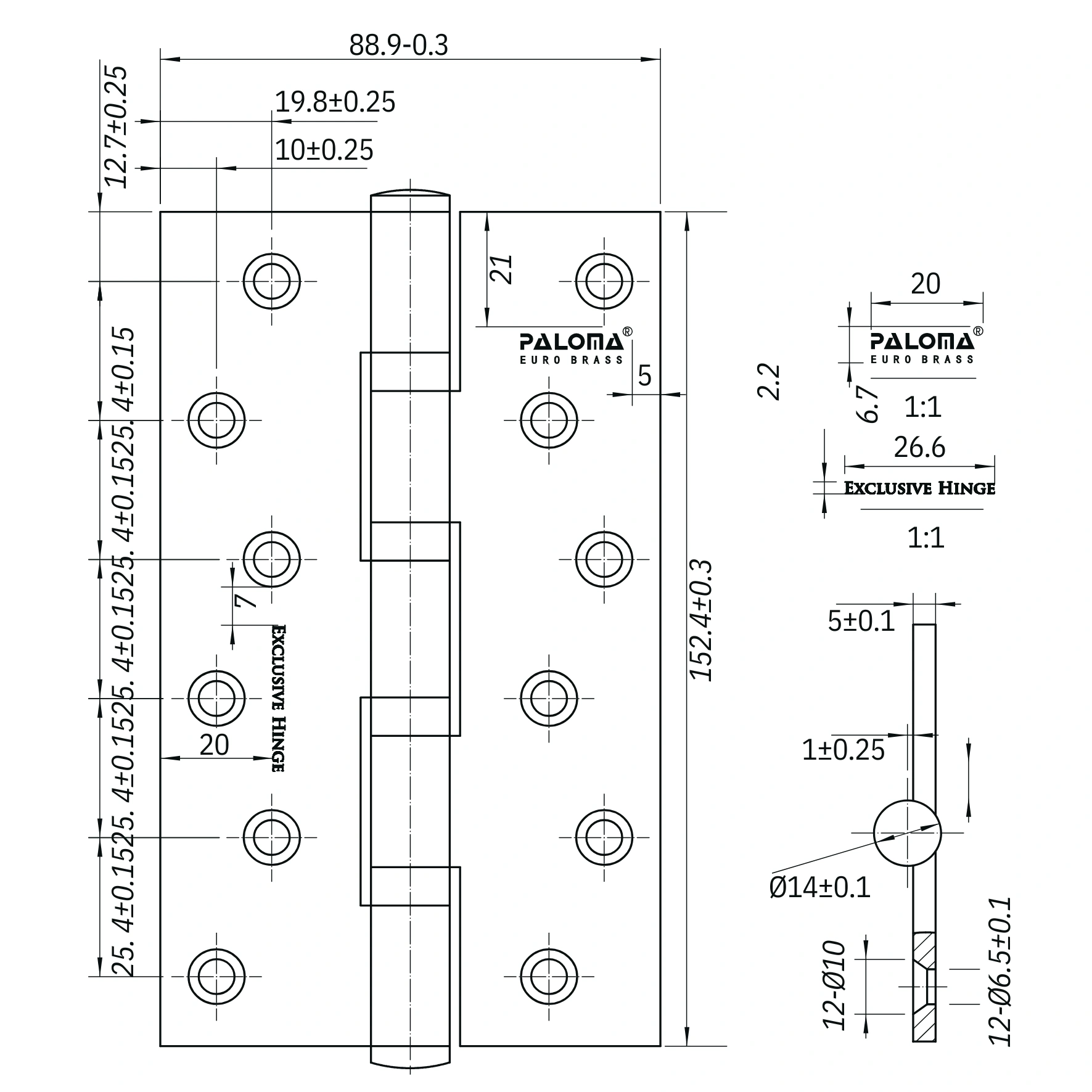 Butt Hinge Brass 6″x 3,5″ x 5 mm 4BB BHP 609 (120kg)
