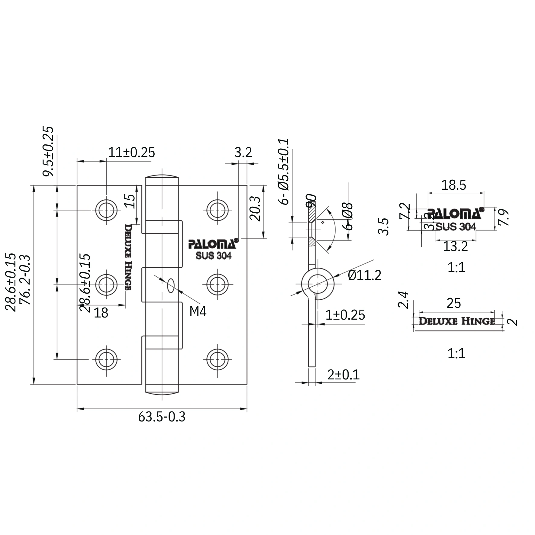 Butt Hinge Dlx 3″ x 2,5″ x 2 mm 2BB NRP BHP 201 (40kg)