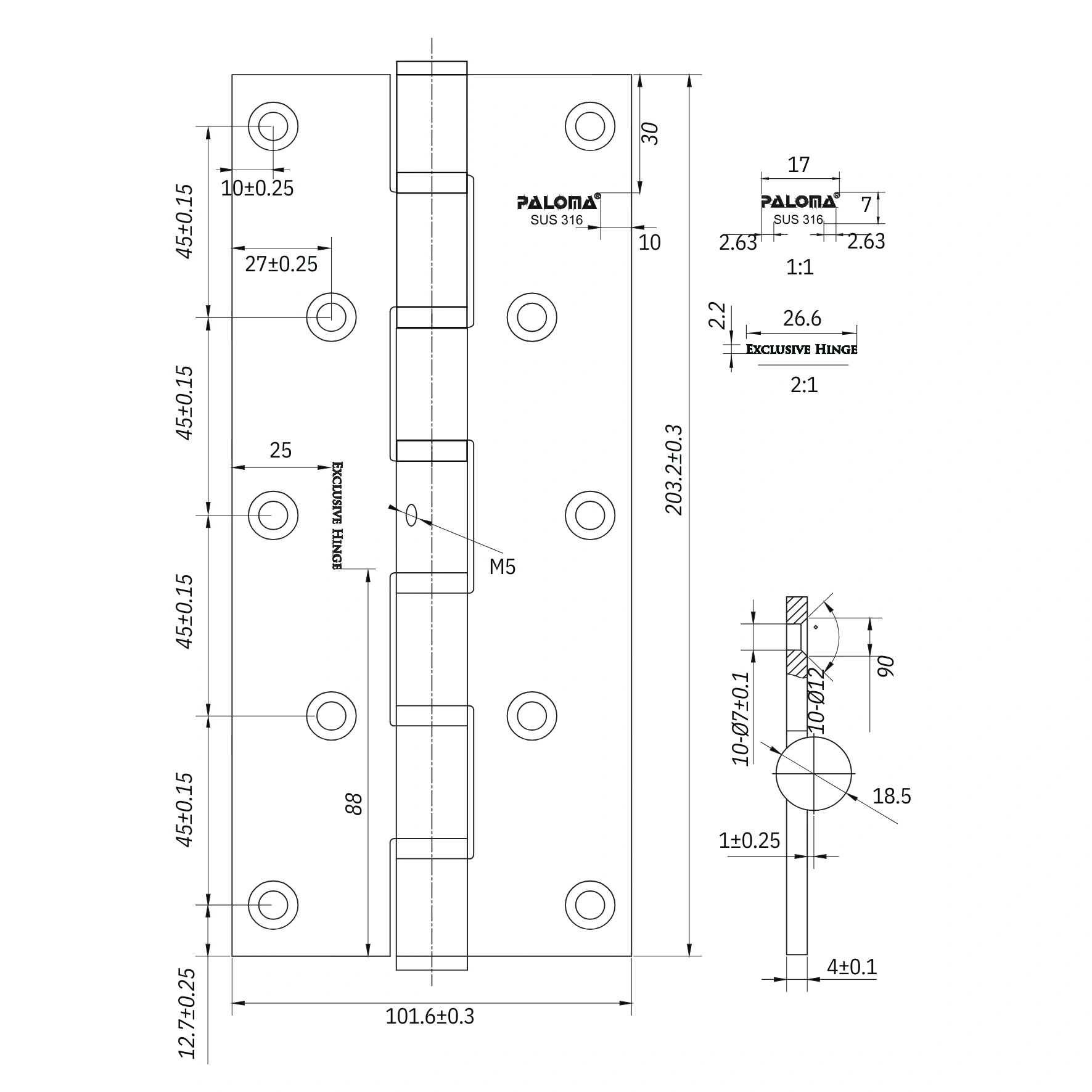 Butt Hinge Exc 8″ x 4″ x 4 mm 4BB NRP BHP 107 (130kg)