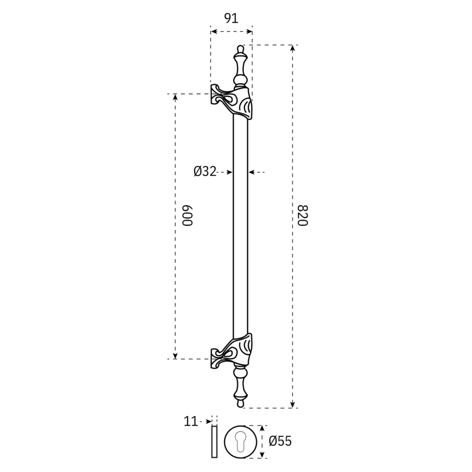 Pull Handle Bastion 820mm (Incl. ECP) PHP 5102