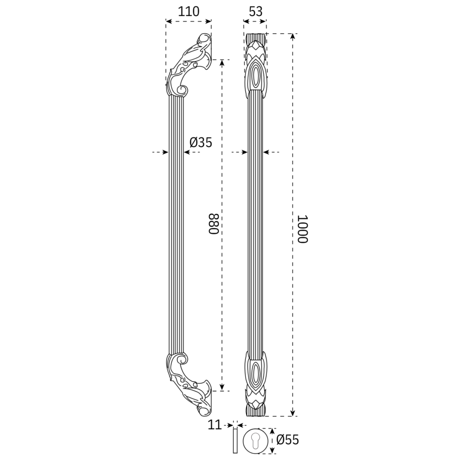 Pull Handle Patheon 1000mm (Incl. ECP) PHP 5122
