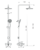 - Hot and cold water faucet with 3 outlets: spout, handshower, and rainshower.