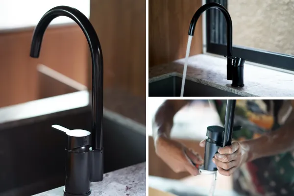 The mixer’s high-quality materials and construction ensure long-lasting durability and performance. The solid brass body provides exceptional resistance to corrosion, while the Duronyx Matte Black finish adds a luxurious touch. This stylish and practical mixer is the perfect addition to any contemporary kitchen, blending seamlessly with the surroundings and enhancing the overall functionality of the space.
